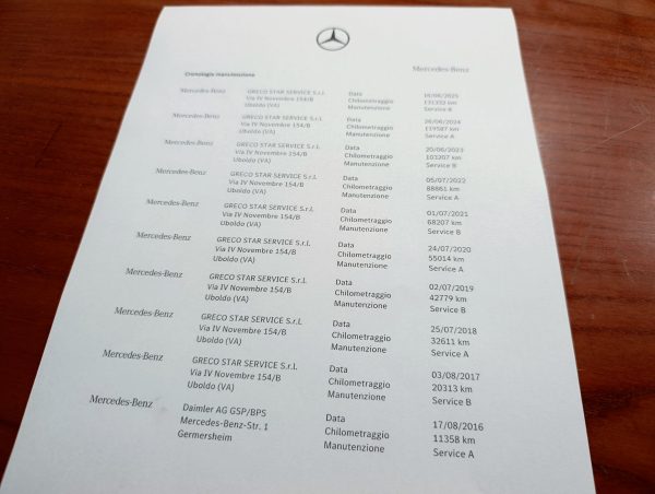 Certificazione chilometrica Mercedes Benz.